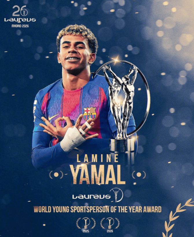 劳伦斯将今日举行颁奖典礼。巴萨前锋亚马尔获得大奖,他拿到了2026年度最佳青年运动员奖。这个奖项是今年首次设立,亚马尔成为首位获奖者。去年的时候,亚马尔获得年度最佳突破奖。亚马尔未来能够获得年度最佳男运动员吗?拭目以待!法甲豪门巴黎圣日耳曼则获得年度最佳团队奖。巴黎圣日耳曼在去年达成6冠王成就,赢得了欧冠、法甲、法国杯、法超杯、欧超杯和洲际杯的冠军,获奖实至名归!
